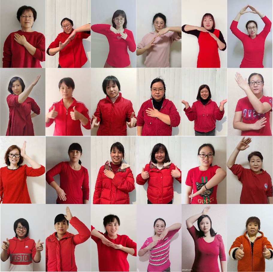 河北新大地的女員工,用手語(yǔ)動(dòng)作把《聽(tīng)我說(shuō)謝謝你》表達(dá)出來(lái)。感謝感謝她們無(wú)畏戰(zhàn)斗、無(wú)私奉獻(xiàn)。